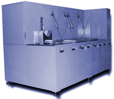 ■ 精洗槽中的溶剂经过蒸汽清洗槽脱气处理,超声波强度高,清洗能力强。